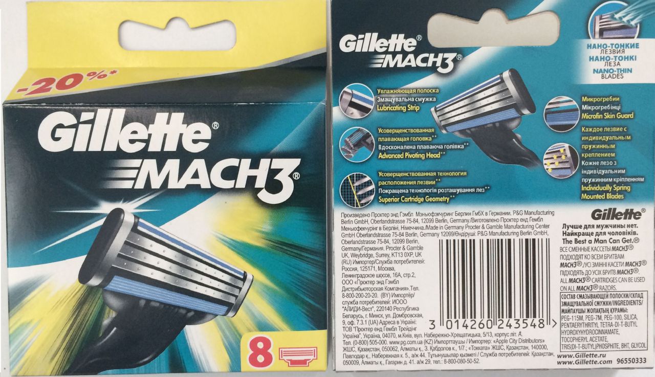 Качественная продукция gillette и приятное обслуживание. Сейчас делаем закупки не большим оптом на кассеты и средства для бритья жилет.