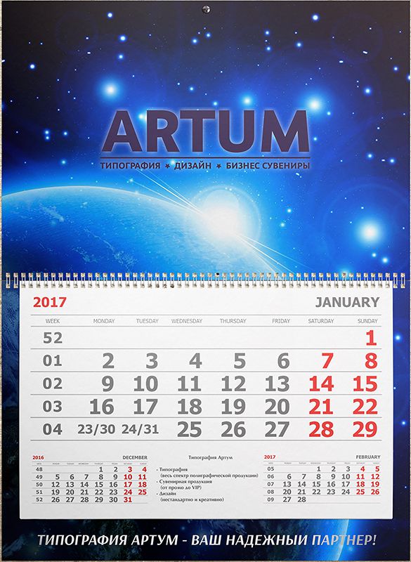 Типография Артум имеет множество оригинальных предложений и решений для Вашей рекламной кампании. Наша цель - создать для вас уникальный логотип, разработать фирменный стиль, Бренд бук и иллюстрации, а также дизайн сопутствующей полиграфической продукции: оригинальные визитки, листовки, календари, буклеты, каталоги. Наши возможности - собственное производство, новейшее оборудование, импортные материалы и лучшие профессионалы, что в совокупности позволяет изготовить для Вас практически любой вид печатной и сувенирной продукции. Сувенирная продукция. Мы выполняем нанесение логотипа, а также любой другой информации о Вашей компании на бизнес сувениры и подарки (ежедневники, ручки, сумки, визитницы, флешки, гаджеты, посуда, одежда и многое другое) Сотрудничество с крупнейшими поставщиками позволяет нам предоставить каждому клиенту обширный ассортимент сувенирной продукции: от ручек с логотипом, ежедневников и блокнотов с тиснением, USB флешек, посуды, а также аксессуаров, одежды с вышивкой логотипа и термо-нанесением, сладостей с логотипом, в том числе значков с логотипом и т.д. до представительных сувениров для V.I.P. - персон, а также нестандартных креативных решений под заказ. Наши услуги: Цифровая печать, офсетная печать, шелкография, широкоформатная печать, а также интерьерная печать, УФ-лак, тампопечать, деколь, в том числе: сублимация, тиснение, гравировка, а также термотрансфер, вышивка и др. Наша команда профессионалов, а также использование надежного и современного оборудования гарантируют качественное нанесение различной информации практически на любую поверхность. Коротко о главном: обращаясь в нашу компанию, Вы гарантированно получаете качественную продукцию!