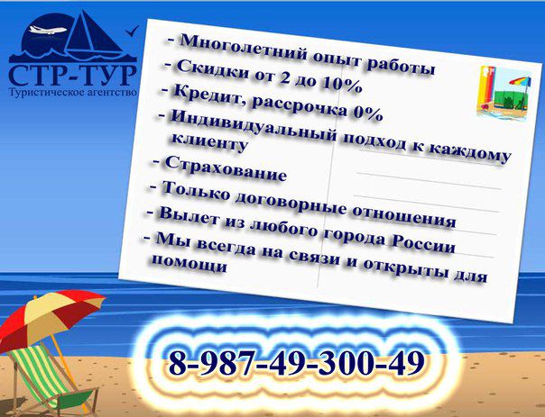 Самые лучшие туры по самым выгодным ценам! Горящие туры! Авиа и ж/д билеты. Автобусные туры по России из городов Башкирии. Санатории. Детский отдых. Круизы. Кредит, рассрочка 0%. Страхование. Почему стоит приобретать тур именно у нас: 1. Многолетний опыт по организации туров, все туристы 100% вылетают отдыхать! 2. Участие в системе лояльности нашего турагентства позволяет экономить от 2% до 10% от стоимости тура! 3. Мы делаем ВСЁ для Вашего удобства – рассрочка без дополнительных комиссий, оплата частями! 4. Мы умеем находить такие варианты отдыха, которые удовлетворяют наших клиентов на 100%! Цена тура, который мы продаем, никогда не бывает выше цены туроператора. 5. Приобретая тур у нас, как у официального турагентства, Вы сможете оформить страховку на случаи, если не сможете поехать, и вернуть 90% от стоимости тура. 6. Вы находитесь под защитой правильно составленного договора, что является гарантией вылета на отдых. Все условия понятны и прозрачны. 7. Возможен вылет из любого города, подбор индивидуальной программы, экскурсий, отелей, мероприятий для семей, молодых пар и путешествующих в одиночку! 8. У нас есть все! Мы работаем со всеми известными туристическими операторами, поэтому у нас Вы можете приобрести любой интересующий Вас тур! 9. Мы заботимся о Вас! Мы всегда на связи, открыты помощи, готовы подсказать в любой ситуации! Выбрав нашу компанию один раз, вы не захотите с нами расставаться. Ведь люди стремятся вернуться туда, где им уже было хорошо.